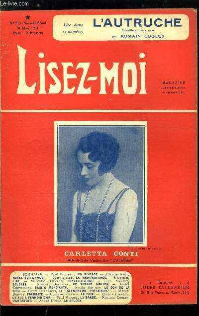 Tallandier. 10 mars 1931. In-12. Broché. Bon état, Couv. convenable, Dos satisfaisant, Intérieur frais. Paginé de 321 à 400. Texte en colonnes.. . . . Classification Dewey : 840-Littératures des langues romanes. Littérature française