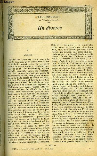Sommaire : Un divorce par Paul Bourget, Les quatre couverts par Pierre Valdagne, Trois paires de bottines par André Birabeau, Taïa (VI) par A. t'Serstevens, Le Confideni par Norbert Sevestre, Le renégal (III) par André Armandy, Souvenirs de théatre par André de Lorde, L'ascension de Virginie, acte troisième par Maurice Donnay Classification Dewey : 840-Littératures des langues romanes. Littérature française