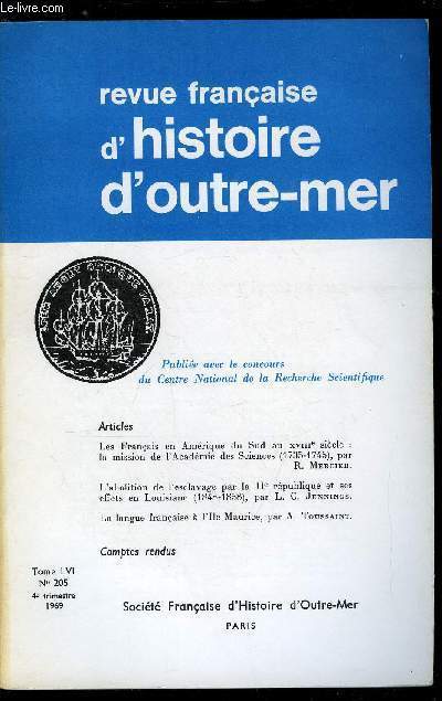 Société française d'histoire d'outre-mer. 4e trimestre 1969. In-12. Broché. Bon état, Couv. convenable, Dos satisfaisant, Intérieur frais. Paginé de 327 à 439.. . . . Classification Dewey : 900-GEOGRAPHIE, HISTOIRE, SCIENCES AUXILIAIRES DE L'HISTOIRE