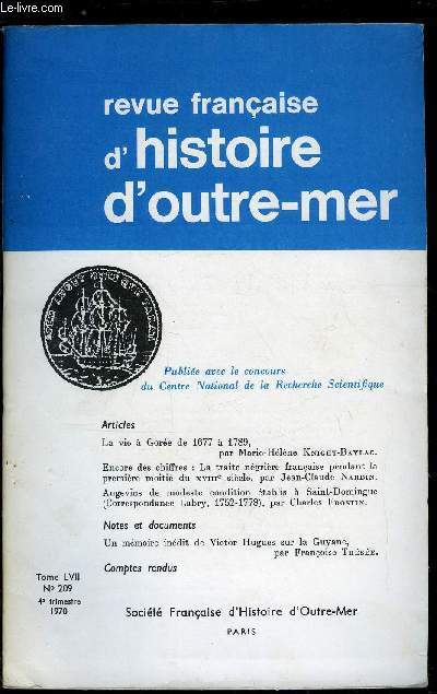 Société française d'histoire d'outre-mer. 4e trimestre 1970. In-12. Broché. Bon état, Couv. convenable, Dos satisfaisant, Intérieur frais. Paginé de 377 à 538.. . . . Classification Dewey : 900-GEOGRAPHIE, HISTOIRE, SCIENCES AUXILIAIRES DE L'HISTOIRE