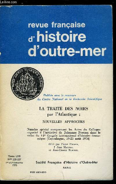 Société française d'histoire d'outre-mer. 1-2 trimestres 1975. In-12. Broché. Bon état, Couv. convenable, Dos satisfaisant, Intérieur frais. Paginé de 1 à 390.. . . . Classification Dewey : 900-GEOGRAPHIE, HISTOIRE, SCIENCES AUXILIAIRES DE L'HISTOIRE