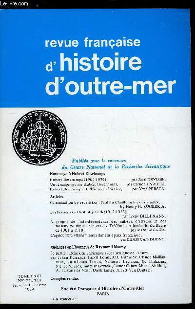 Société française d'histoire d'outre-mer. 1-2 trimestres 1979. In-12. Broché. Bon état, Couv. convenable, Dos satisfaisant, Intérieur frais. Paginé de 1 à 267.. . . . Classification Dewey : 900-GEOGRAPHIE, HISTOIRE, SCIENCES AUXILIAIRES DE L'HISTOIRE