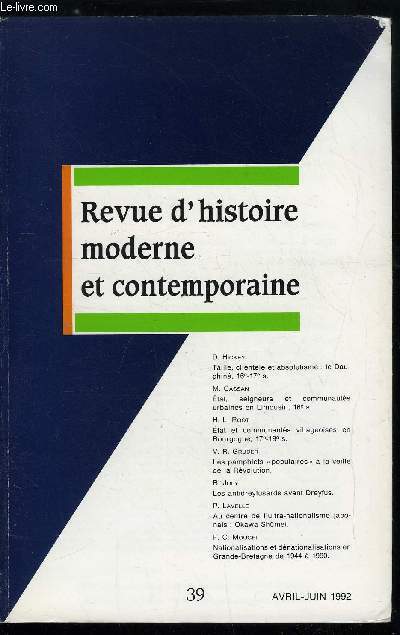 Société d'histoire moderne. Avril-Juin 1992. In-12. Broché. Bon état, Couv. convenable, Dos satisfaisant, Intérieur frais. Paginé de 161 à 352.. . . . Classification Dewey : 900-GEOGRAPHIE, HISTOIRE, SCIENCES AUXILIAIRES DE L'HISTOIRE