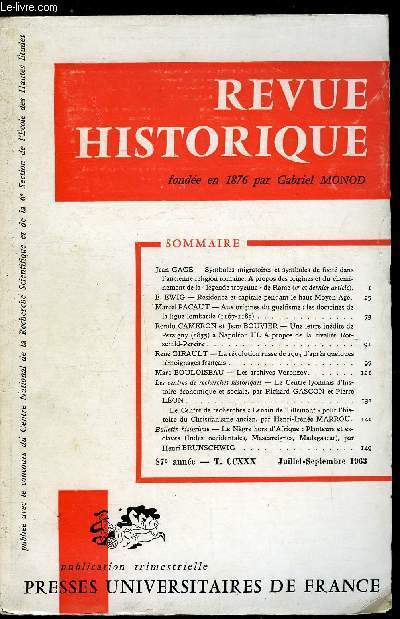 Presses universitaires de france. Juillet-Sept 1963. In-12. Broché. Bon état, Couv. convenable, Dos satisfaisant, Intérieur frais. Paginé de 1 à 283.. . . . Classification Dewey : 900-GEOGRAPHIE, HISTOIRE, SCIENCES AUXILIAIRES DE L'HISTOIRE