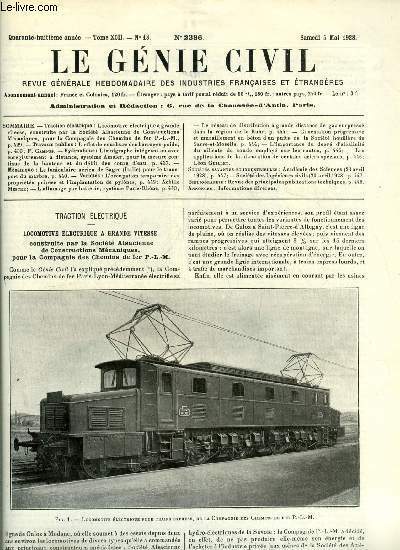 Sommaire : Locomotive électrique a grande vitesse, construite par la société alsacienne de constructions mécaniques, pour la compagnie des chemins de fer P.L.M., L'effet de courbure des barrages poids par F. Campus, Limnigraphe intégrant ou avec enregistrement a distance, système Amsler, pour la mesure continue de la hauteur et du débit des cours d'eau Classification Dewey : 624-Génie civil