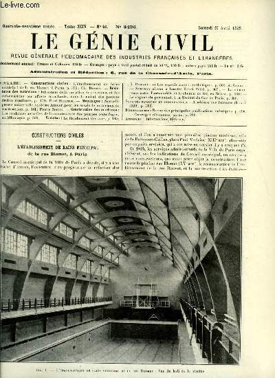 Bureau de la revue. 20 avril 1929. In-12. Broché. Bon état, Couv. convenable, Dos satisfaisant, Intérieur frais. Paginé de 373 à 396. Nombreuses illustrations en noir et blanc dans et hors texte.. . . . Classification Dewey : 624-Génie civil