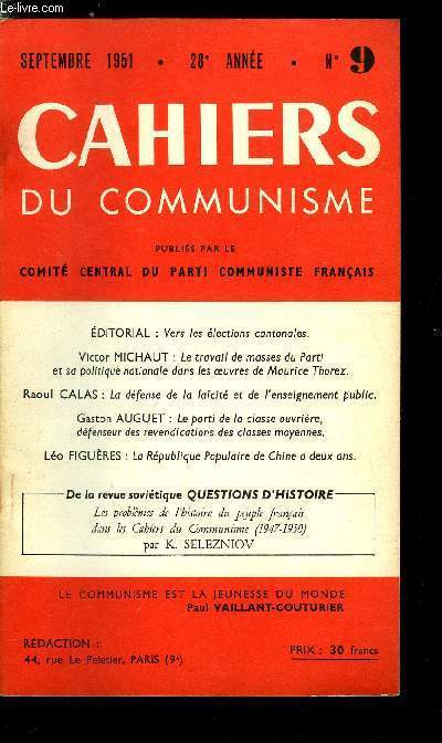 Sommaire : Vers les élections cantonales, Le travail de masse du Parti et sa politique nationale dans les oeuvres de Maurice Thorez par Victor Michaut, Les problèmes de la presse communiste et démocratique par Marius Patinaud, Le parti de la classe ouvrière défenseur des revendications des classes moyennes par Gaston Auguet, La défense de la laïcité et de l'enseignement public par Raoul Calas Classification Dewey : 330-Economie