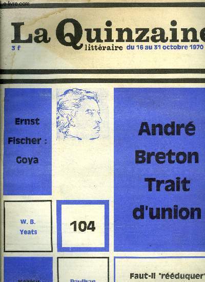 Sommaire : Enfin, Veblen par Georges Friedmann, Le testament de Yeats par Serge Fauchereau, Jacques Réda par Alain Huraut, Les oracles de la nuit par Jacques Lacarrière, Faut-il rééduquer l'intellectuel ? par Bernard Pingaud, Trouble et sauvage par Claude Bonnefoy Classification Dewey : 809-Histoire, littérature
