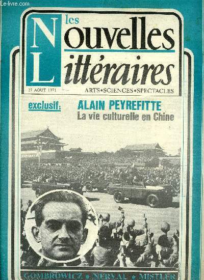 Sommaire : Situation culturelle de la Chine par Alain Peyrefitte, Mort et résurrection d'un voyant : Witold Gombrowicz par Stanislas Kocik, Les nouveaux venus : Pierre Rouanet par Daniel Oster, Littérature étrangère : la place du diamant de Mercé Rodoreda par Jean Marc Dufour Classification Dewey : 840-Littératures des langues romanes. Littérature française