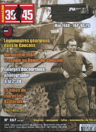 Sommaire : Un match de football politisé a Berne, en 1941, mémorable victoire suisse sur l'Allemagne par Jean Pierre Thévoz, Les chenilles du 184e RALPA a l'épreuve du feu par Jean Yves Mary, Les légionnaires géorgiens dans la bataille de Caucase, l'épopée caucasienne du 795e bataillon d'infanterie géorgien par Georges Mamoulia Classification Dewey : 940.53-Seconde Guerre mondiale 1939-1945