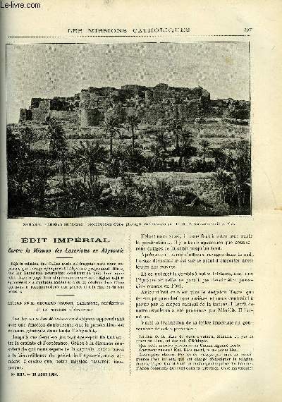 Bureaux des Missions Catholiques. 19 aout 1904. In-12. Broché. Bon état, Couv. convenable, Dos satisfaisant, Intérieur frais. Paginé de 397 à 408. Texte en colonnes. Quelques gravures en noir et blanc dans et hors texte.. . . . Classification Dewey : 234-La foi