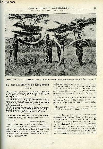 Bureaux des Missions Catholiques. 14 février 1908. In-12. Broché. Bon état, Couv. convenable, Dos satisfaisant, Intérieur frais. Paginé de 73 à 84. Texte en colonnes. Quelques photographies en noir et blanc dans et hors texte.. . . . Classification Dewey : 234-La foi