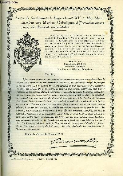 Bureaux des Missions Catholiques. 3 février 1922. In-12. Broché. Bon état, Couv. convenable, Dos satisfaisant, Intérieur frais. Paginé de 49 à 60. Texte en colonnes. Quelques illustrations en noir et blanc dans et hors texte.. . . . Classification Dewey : 234-La foi