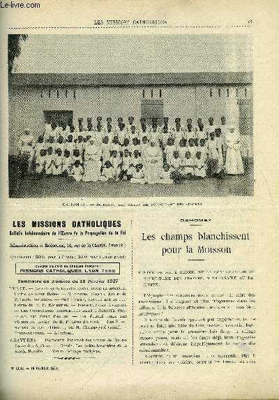 Bureaux des Missions Catholiques. 18 février 1927. In-12. Broché. Bon état, Couv. convenable, Dos satisfaisant, Intérieur frais. Paginé de 73 à 84. Texte en colonnes. Quelques illustrations en noir et blanc dans et hors texte.. . . . Classification Dewey : 234-La foi