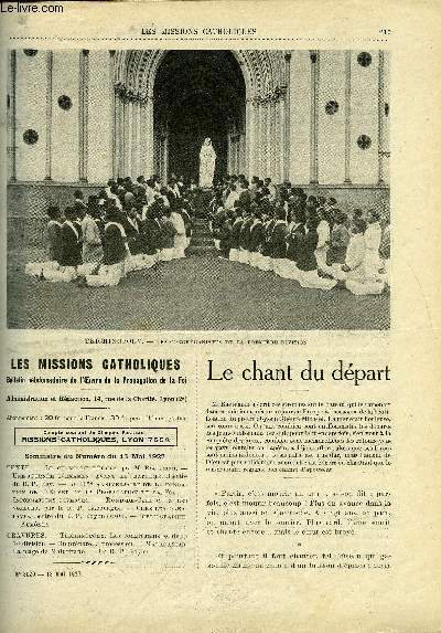 Bureaux des Missions Catholiques. 13 mai 1927. In-12. Broché. Bon état, Couv. convenable, Dos satisfaisant, Intérieur frais. Paginé de 217 à 228. Texte en colonnes. Quelques illustrations en noir et blanc dans et hors texte.. . . . Classification Dewey : 234-La foi