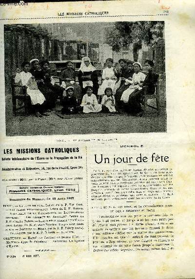 Bureaux des Missions Catholiques. 19 aout 1927. In-12. Broché. Bon état, Couv. convenable, Dos satisfaisant, Intérieur frais. Paginé de 385 à 396. Texte en colonnes. Quelques illustrations en noir et blanc dans et hors texte.. . . . Classification Dewey : 234-La foi
