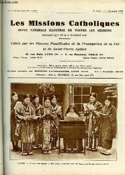 Bureaux des Missions Catholiques. 1 février 1932. In-12. Broché. Bon état, Couv. convenable, Dos satisfaisant, Intérieur frais. Paginé de 49 à 76. Texte en colonnes. Quelques illustrations en noir et blanc dans et hors texte.. . . . Classification Dewey : 234-La foi