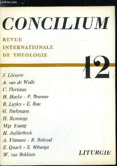 Sommaire : L'assemblée liturgique - fondements bibliques et patristiques par J. Lécuyer, Rencontre du Christ et communauté liturgique - principes préliminaires dogmatiques par A. Van de Walle, L'assemblée et ses implications pastorales par C. Floristan Classification Dewey : 260-Théologie sociale chrétienne