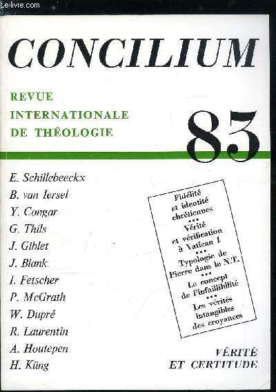 Sommaire : Genèse historique du problème : Les normes de fidélité et d'identité chrétiennes a travers l'histoire de l'église par Yves Congar, Vérité et vérification a Vatican I par Gustave Thils, Aspects de la vérité dans le Nouveau Testament par Jean Giblet Classification Dewey : 260-Théologie sociale chrétienne