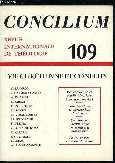 Sommaire : Liminaire par Christian Duquoc, Vie chrétienne et conflit historique : ignorance mutuelle ? par Juan Carmelo Garcia, Lutte des classes et perspectives chrétiennes de la réconciliation par Alain Durand, Nostalgie de l'unité dans l'Eglise et politique d'étouffement des conflits par Claude Gérest Classification Dewey : 260-Théologie sociale chrétienne
