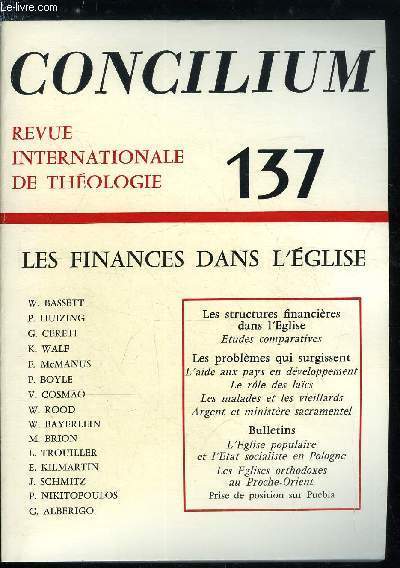 Sommaire : Les structures financières dans l'église, études comparatives, Les ressources et les activités financières du Vatican par Giovanni Cereti, L'impot ecclésiastique, moyen d'existence par Knut Walf, Financement de l'église par les offrandes volontaires par William Bassett Classification Dewey : 260-Théologie sociale chrétienne