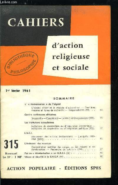 Editions Spes. 1er février 1961. In-12. Broché. Bon état, Couv. convenable, Dos satisfaisant, Intérieur frais. Paginé de 65 à 96.. . . . Classification Dewey : 260-Théologie sociale chrétienne