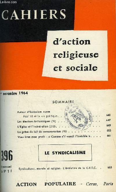 Editions Spes. 1er novembre 1964. In-12. Broché. Bon état, Couv. convenable, Dos satisfaisant, Intérieur frais. Paginé de 641 à 672.. . . . Classification Dewey : 260-Théologie sociale chrétienne