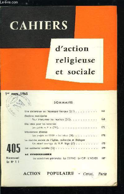 Bureau de la revue. 1er mars 1965. In-12. Broché. Bon état, Couv. convenable, Dos satisfaisant, Intérieur frais. Paginé de 161 à 192.. . . . Classification Dewey : 260-Théologie sociale chrétienne