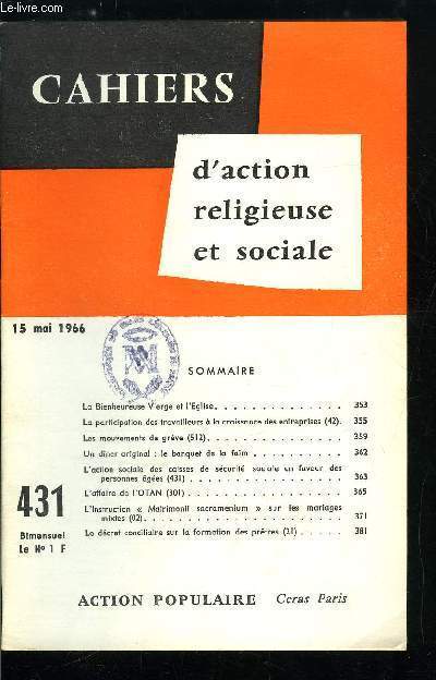 Sommaire : La bienheureuse Vierge et l'église, La participation des travailleurs a la croissance des entreprises, Les mouvements de grève, Un diner original : le banquet de la faim, L'action sociale des caisses de sécurité sociale en faveur des personnes agées Classification Dewey : 260-Théologie sociale chrétienne