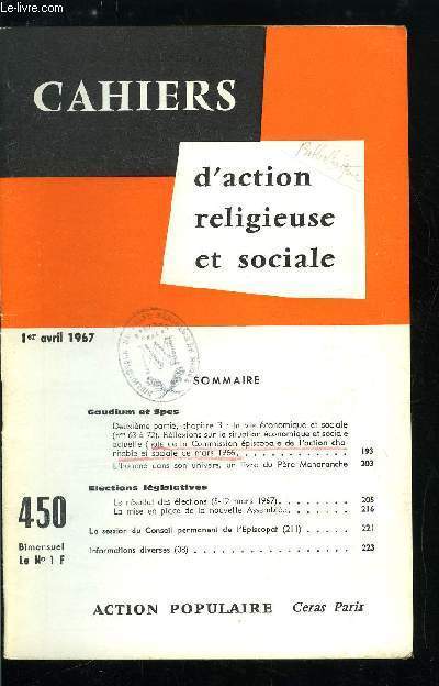 Sommaire : Gaudium et spes, la vie économique et sociale, Réflexions sur la situation économique et sociale actuelle, Elections législatives, Le résultat des élections, La mise en place de la nouvelle Assemblée, La session du conseil permanent de l'episcopat Classification Dewey : 260-Théologie sociale chrétienne