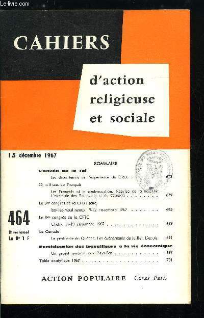 Bureau de la revue. 15 décembre 1967. In-12. Broché. Bon état, Couv. convenable, Dos satisfaisant, Intérieur frais. Paginé de 673 à 704.. . . . Classification Dewey : 260-Théologie sociale chrétienne