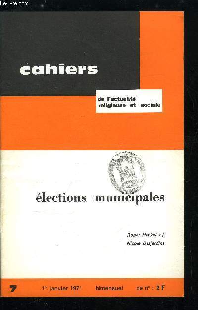 Sommaire : Elections municipales - La commune, communauté politique, Les grandes taches de la commune, Les institutions municipales, Programmes, hommes et partis, Les partis a la veille des élections municipales, Liberté et diversité du choix politique chez les catholiques Classification Dewey : 260-Théologie sociale chrétienne
