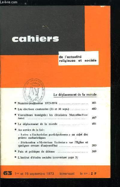 Bureau de la revue. 1-15 septembre 1973. In-12. Broché. Bon état, Couv. convenable, Dos satisfaisant, Intérieur frais. Paginé de 481 à 512.. . . . Classification Dewey : 260-Théologie sociale chrétienne