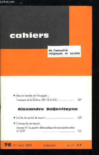 Bureau de la revue. 1er avril 1974. In-12. Broché. Bon état, Couv. convenable, Dos satisfaisant, Intérieur frais. Paginé de 225 à 226.. . . . Classification Dewey : 260-Théologie sociale chrétienne