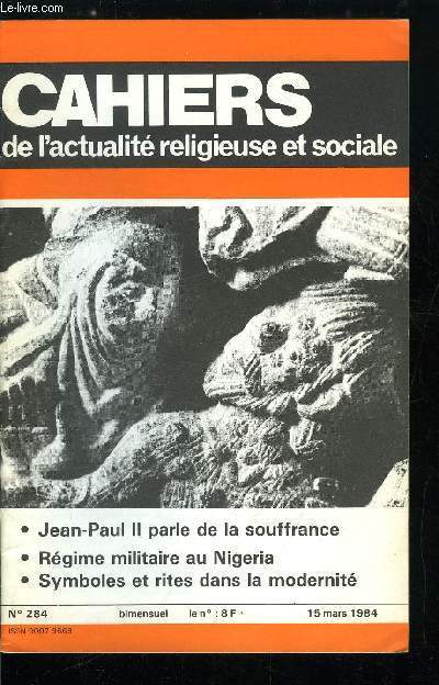 Sommaire : Jean Paul II parle de la souffrance par Bertrand Cassaigne, Pour des abonnés relais par Olivier de Dinechin, Régime militaire au Nigéria par Christian Mellon, Symboles et rites dans la modernité par Abel Jeannière Classification Dewey : 260-Théologie sociale chrétienne