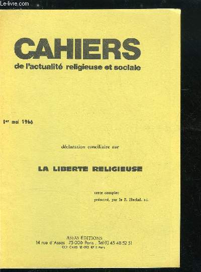 Assas éditions. 1er mai 1966. In-12. Broché. Bon état, Couv. convenable, Dos satisfaisant, Intérieur frais. 32 pages.. . . . Classification Dewey : 260-Théologie sociale chrétienne