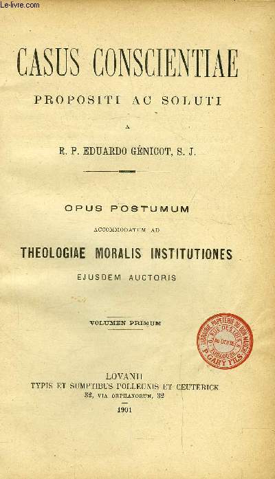Typis et sumptibus polleunis et ceuterick. 1901. In-4. Relié. Bon état, Couv. convenable, Dos satisfaisant, Intérieur frais. 428 + 605 pages. Auteur et titre dorés sur le dos. Pages 1 à 6 désolidarisées dans le premier tome. 2 photos disponibles.. . . . Classification Dewey : 200-RELIGION