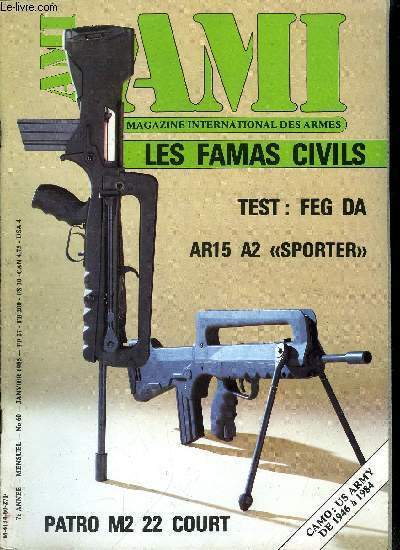 Le magazine international des armes. Sommaire : Le Patro M2 en .22 court, Le pistolet FEG Double action system en 9mm Para, Présentation des famas civils, Le fusil Colt AR-15 A2 Sporter, Grease Gun Story : manipulations et essai de tir, Parrish Survival/Combat Knife, Les modèles de tenues camouflées de l'US Army de 1946 a 1984, Le nouvel équipement Practical de Gil Holsters, Techniques armurières : le stand d'essais balistique du banc d'épreuve armes a feu a Liège Classification Dewey : 355.8-Armes