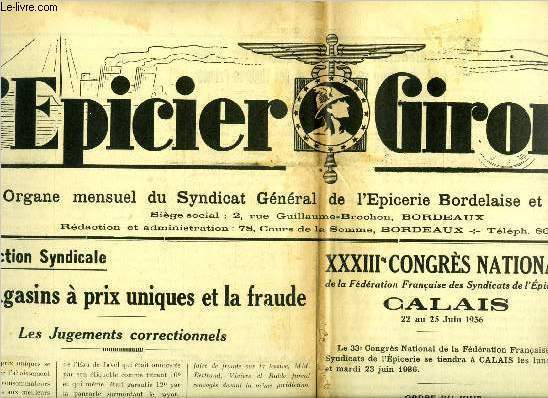 Sommaire : Notre action syndicale, les magasins a prix uniques et la fraude, les jugements correctionnels, XXXIIIe congrès national de la fédération des syndicats de l'épicerie, L'ordre corporatif et professionnel, Bénéfices industriels et commerciaux, Calendrier fiscal de juin 1936 Classification Dewey : 908.447-Régionalisme : Aquitaine
