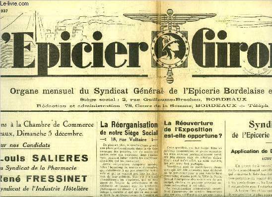 Sommaire Elections a la chambre de Commerce de Bordeaux, dimanche 5 novembre, La réorganisation de notre siège sociale, 18 rue Voltaire, La réouverture de l'exposition est-elle opportune ? par E. Musset, Syndicat général de l'épicerie bordelaise et régionale Classification Dewey : 908.447-Régionalisme : Aquitaine