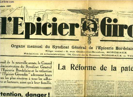 Sommaire : Attention, danger ! un plan de ravitaillement par Hemelle, La réforme de la patente par R. Cossaune, Ou en est la question des coopératives patronales ?, Calendrier fiscal de janvier 1938 par M. Joseph Quantin, La hausse illicite des prix Classification Dewey : 908.447-Régionalisme : Aquitaine