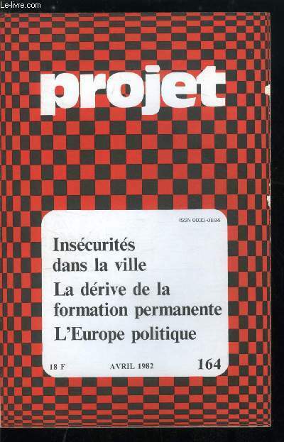 Sommaire : La myopie de Gulliver par P. de Charentenay, Insécurités dans la ville - Violence(s) ensemble(s) par L. Fauconnet, Mesures d'insécurité par P. Mazelayre, La police devant l'insécurité par J.P. Gualezzi, Juge de quelle insécurité ? par B. Palanque, Les enfants perdus ou le sacrifice de l'avant garde par P. Giros, La dérive de la formation permanente de l'utopie au fonctionnel, Une force de changement par E. Vandermeersch Classification Dewey : 300-SCIENCES SOCIALES