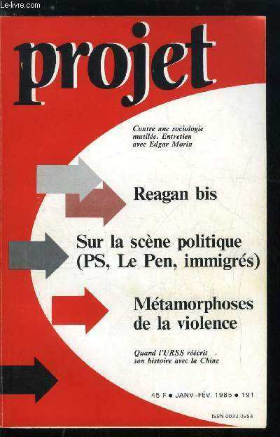 Sommaire : Sur la sociologie, entretien avec E. Morin, Militants socialistes : le pouvoir use par C. Ysmal et R. Cayrol, Le Pen dans sa presse par J.L. Schlegel, Du bon usage politique des immigrés par C. Wihtol de Wenden, L'Amérique reaganienne, après un vote euphorique par S. Hoffmann, La Chine vue par la lorgnette soviétique par A. Antonkin Classification Dewey : 300-SCIENCES SOCIALES