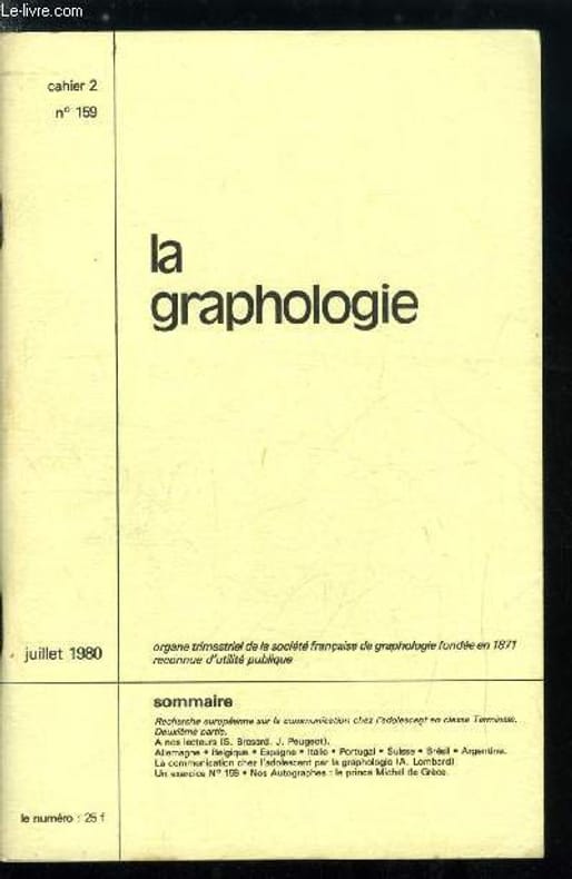 Société française de graphologie. Juillet 1980. In-12. Broché. Bon état, Couv. convenable, Dos satisfaisant, Intérieur frais. 104 pages.. . . . Classification Dewey : 155.2-Psychologie individuelle