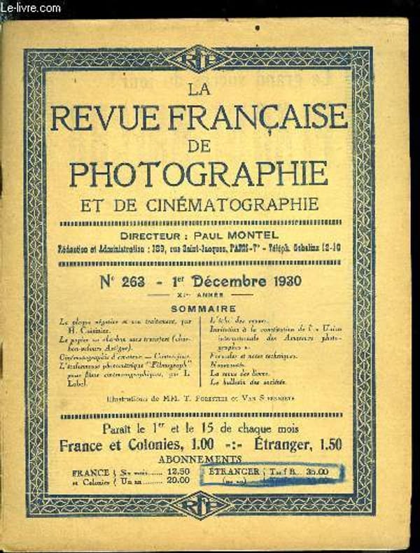 Bureau de la revue. 1er décembre 1930. In-12. Broché. Bon état, Couv. convenable, Dos satisfaisant, Intérieur frais. Paginé de 357 à 372. Quelques photographies en noir et blanc dans et hors texte.. . . . Classification Dewey : 770-Photographie
