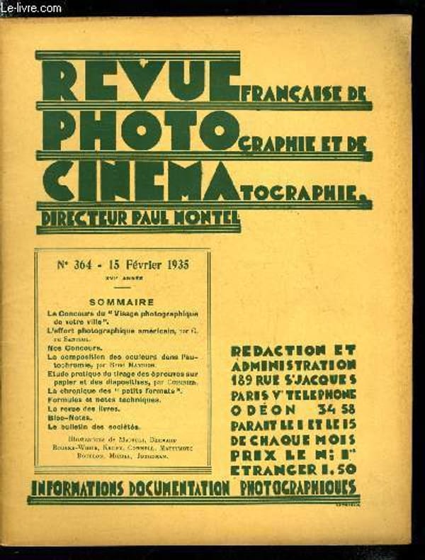 Bureau de la revue. 15 février 1935. In-12. Broché. Bon état, Couv. convenable, Dos satisfaisant, Intérieur frais. Paginé de 49 à 64. Quelques photographies en noir et blanc dans et hors texte.. . . . Classification Dewey : 770-Photographie