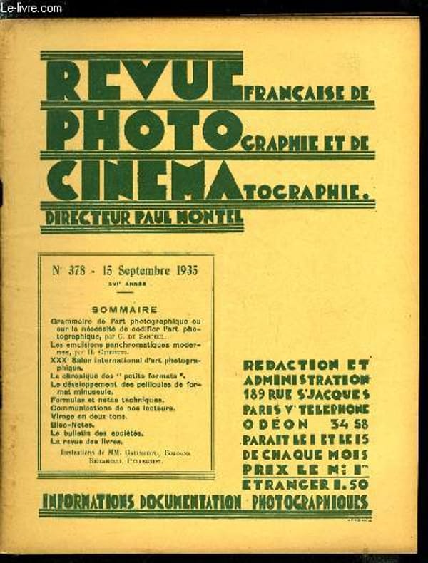 Bureau de la revue. 15 septembre 1935. In-12. Broché. Bon état, Couv. convenable, Dos satisfaisant, Intérieur frais. Paginé de 273 à 288. Quelques photographies en noir et blanc dans et hors texte.. . . . Classification Dewey : 770-Photographie