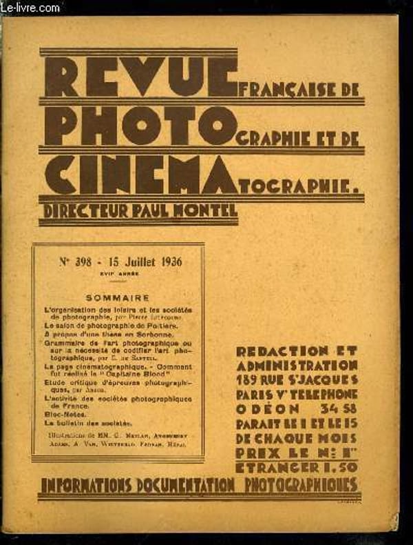 Bureau de la revue. 15 juillet 1936. In-12. Broché. Bon état, Couv. convenable, Dos satisfaisant, Intérieur frais. Paginé de 209 à 224. Quelques photographies en noir et blanc dans et hors texte.. . . . Classification Dewey : 770-Photographie