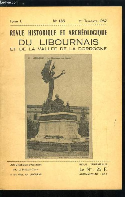 Sommaire : Harangue a Richard Coeur de Lion par D. Querre, Le sculpteur libournais Henri Jean Moreau par J.F. Fournier, Réponse du curé de Libourne au questionnaire de l'abbé Baurein, Nécropole mérovingienne a Coutras par D. Barraud et B. Chièze, L'hopital achève le couvent des récollets par E. Scaliger Classification Dewey : 908.447-Régionalisme : Aquitaine