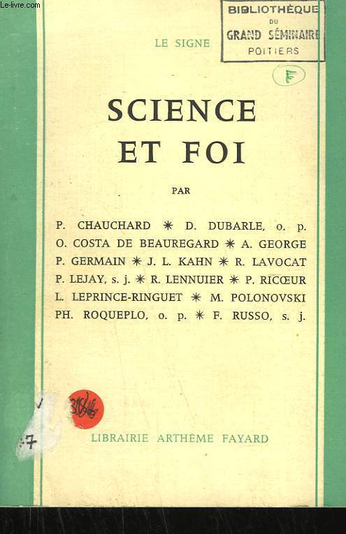 Auteurs : P. Chauchard, R. CHauvin, O. Costa de Beauregard, D. Dubarle, A. George, P. Germain, R. Lennuier, L. Leprince - Ringuet. Classification Dewey : 200-RELIGION